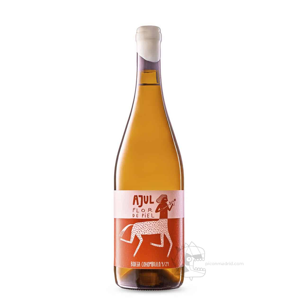 Ajul Flor de Piel despalillado, estrujado y maceración en frio durante 5 días, Skincontact. Prensa suave para obtener 400L de mosto. Fermenta en deposito de acero inoxidable. A los 5 días trasiego a barrica de roble francés. Cero sulfuroso, enzimas o levaduras. Fermentación espontánea. Vino de parcela.